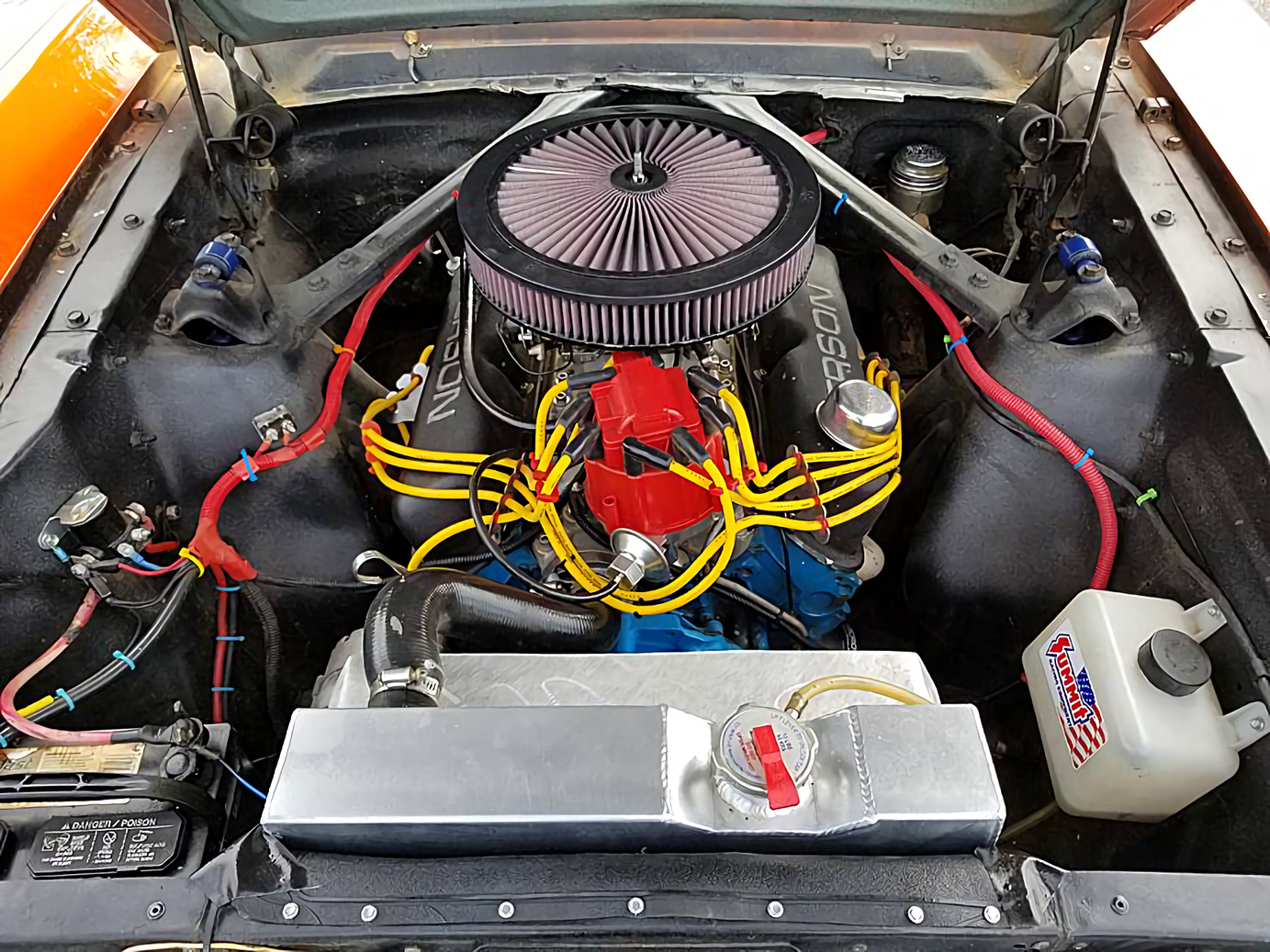 There’s definitely performance to back those looks up, though. Originally a C-code 289 two-barrel, the engine was rebuilt with power in mind. The two-barrel carb and manifold were swapped for an Edelbrock 600CFM carb sitting atop a Torker intake manifold. A K&N filter is the cherry on top of the four-barrel sundae.