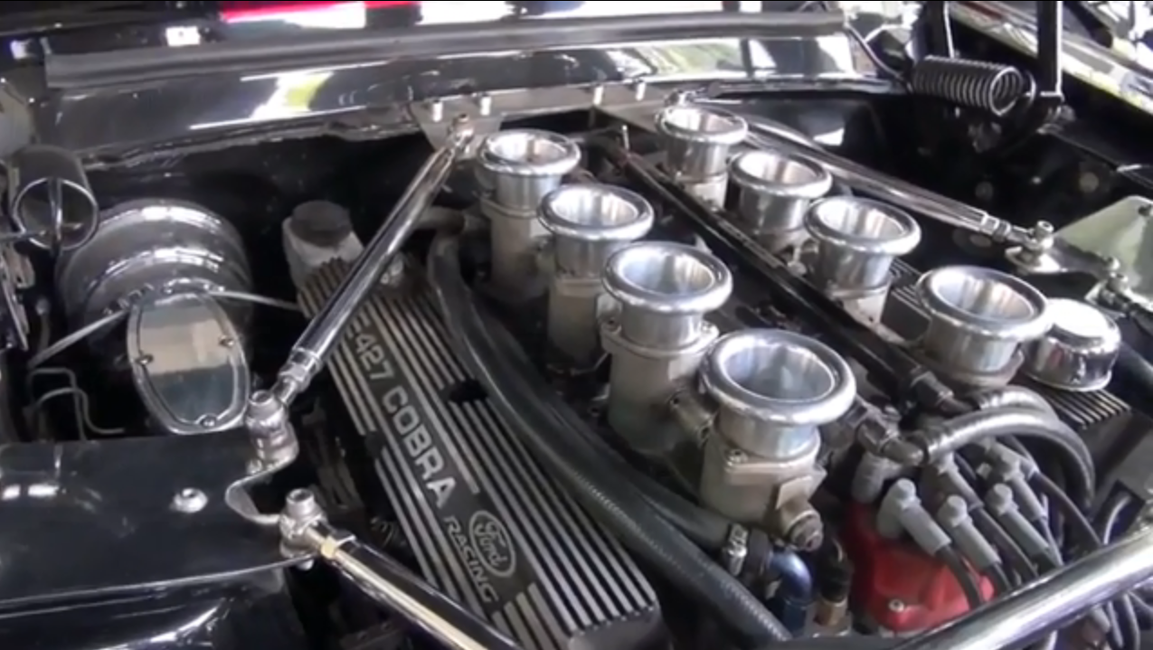 In the video, we’re treated to the sweet sounds of this high-horsepower Mustang, and, eventually, we get to see under the hood. While the fake “427 COBRA” valve covers look kind of tacky to us (it’s clearly a Windsor small block), all is forgiven by the individual throttle bodies.