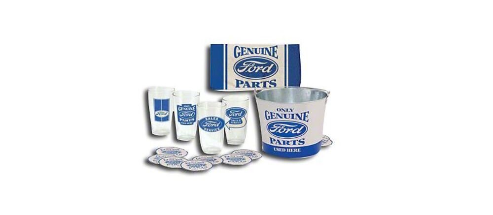 This set of four Ford-branded pint glasses comes with 12 coasters, a bar towel, and an old-school ice bucket. It’s a great way to keep your pals hydrated when they come over to help out with you latest rear end swap or supercharger install.