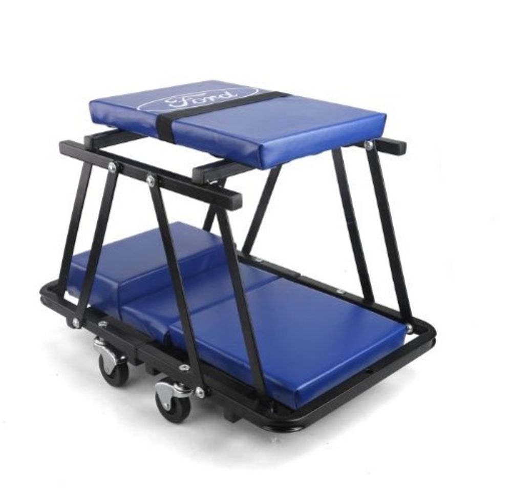 Two of the most important tools in your garage won’t fit in your toolbox. A creeper makes working underneath a car much easier, while a rolling chair or stool makes certain jobs — like brake work — much more comfortable. This handy creeper converts into a comfortable work seat in seconds, and best of all, it’s wearing the blue oval loud and proud.