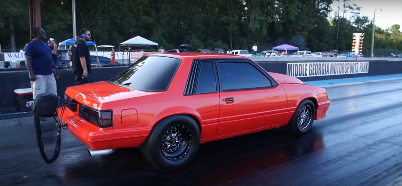 Lighting up the strip at Middle Georgia Motorsports Park, we hear the trademark burble of a mean bowtie powerplant under the hood. We’ve been seeing an awful lot of Chevy-powered Mustang drag cars lately, and we’re not sure what to make of it.
