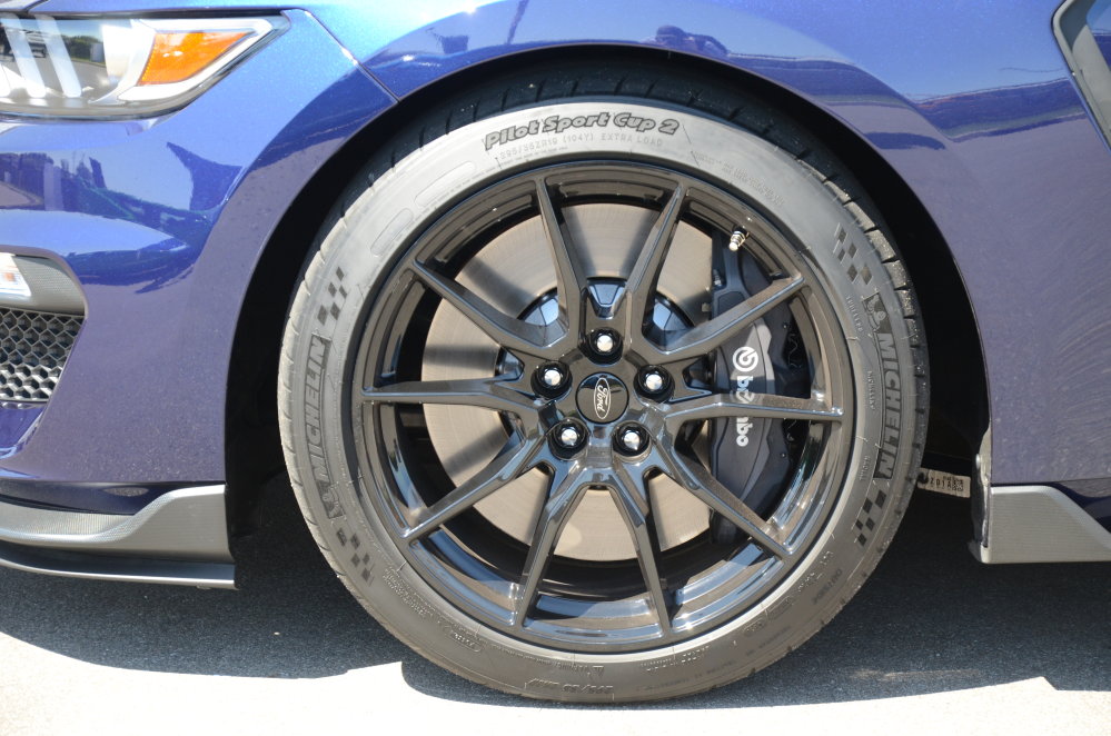The 2019 GT350 comes with six-piston Brembo front brake calipers and 15.5-inch, two-piece, cross drilled iron discs mounted to aluminum hats with a unique floating pin system. Out back, there is a four-piston Brembo system with 14.9-inch rotors with the same unique construction. As modern brake systems go, this is as about as cutting edge as it goes in terms of steel systems.