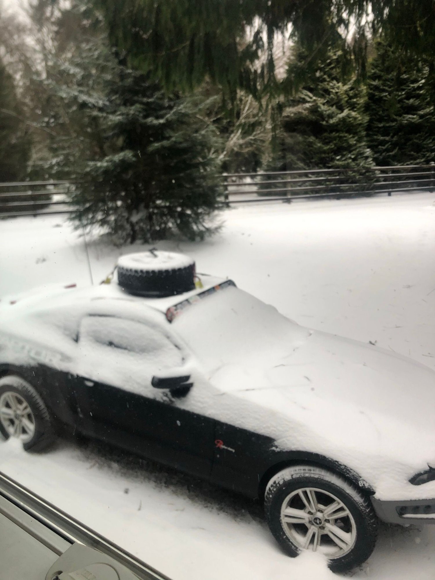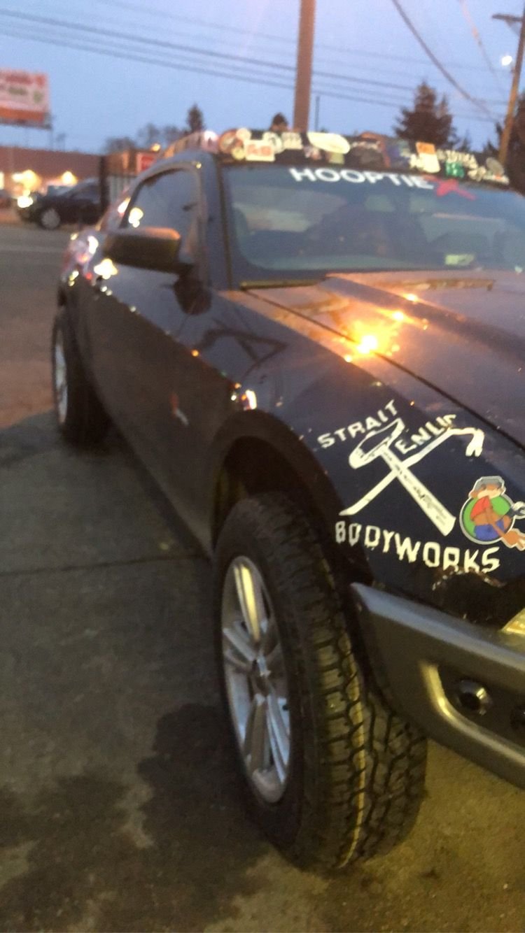 New tires on the stang just in time for HooptieX snow cross next weekend in Glenwood, WA.