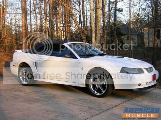 Look at sxynerd's wifes car...chrome 18" 2000 cobra r wheels...looks sexy as hell!!! White with the right chrome wheels=sex!!!