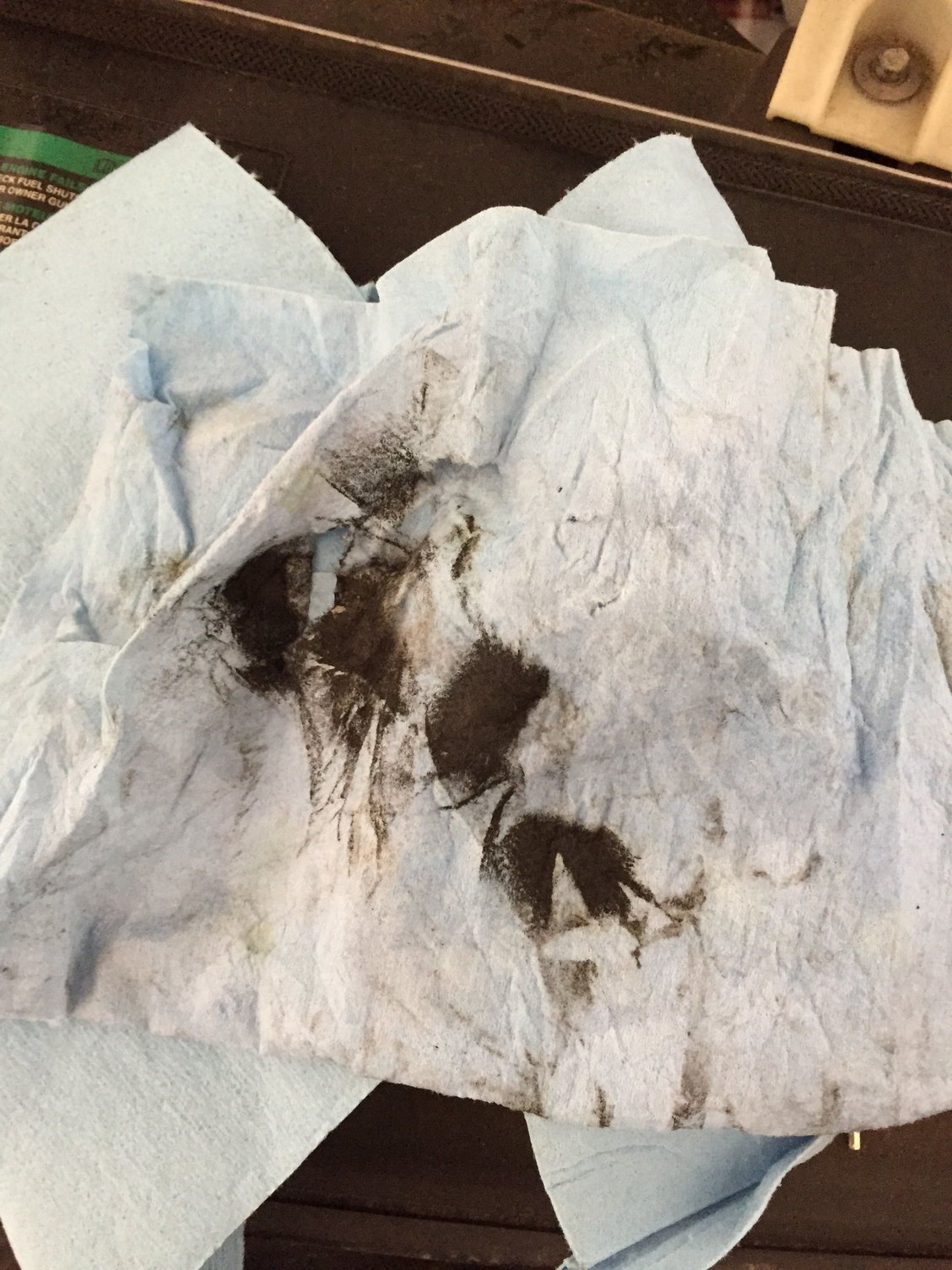 The cleaned off filter, not completely like-new, but much better. Just hope I didn't over do it with the filter oil