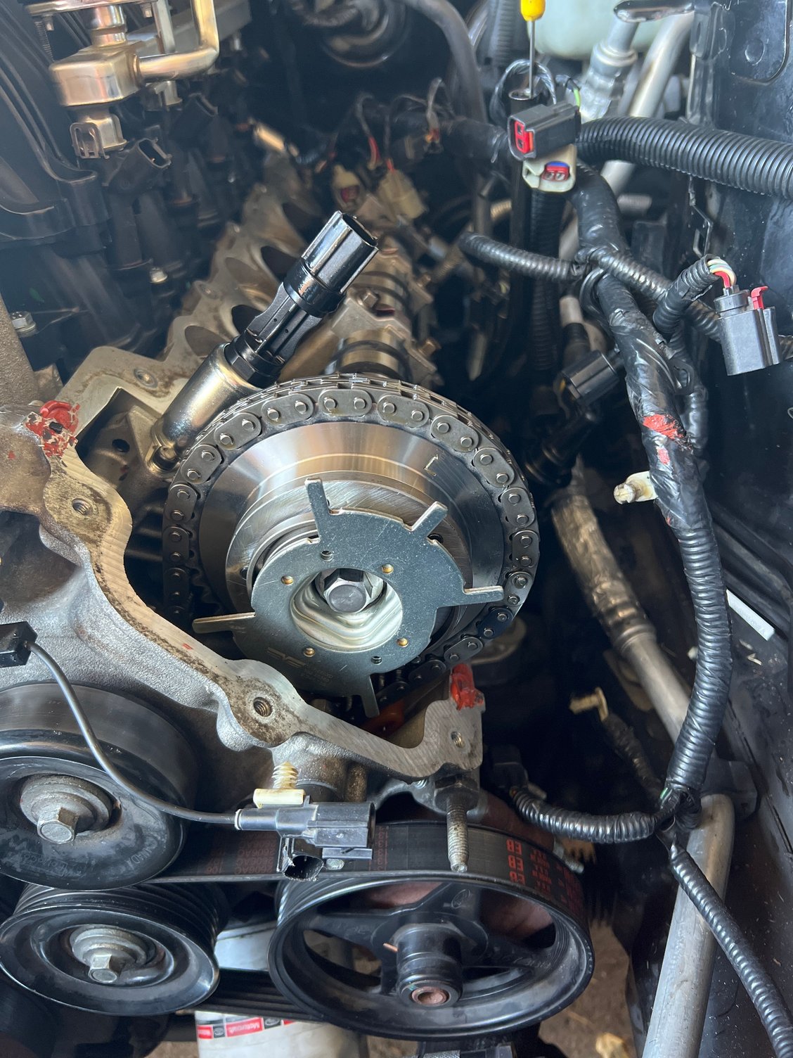 So I recently rebuilt the top end of my motor and put ford hot rod cams with new cam phasers and I thought when I timed the motor it was good and proceeded to put the motor back together but when I went for the start up it started fine but would hang around 1k rpm’s and would eventually die out and when raving the motor it would rev very slow. I am bama tuned and have the tune perfect for all the modifications I have on the car but is there a way I can check my timing without taking off the timing cover or but just pulling the valve covers? Thanks.