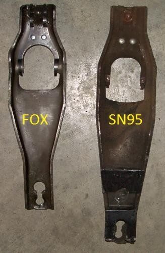 Even if the TOB is up against and pressing on the pressure plate fingers,that doesn't necessarily mean its pushing the fingers in far enough to disengage the disk from the flywheel.If you can't put it in gear or take it out of gear with the engine running,but you can if the engine is shutoff,its clearly not disengaging properly.Since you ordered the transmission new,chances are very high that you got the correct transmission for your year model.However,if you had to cut the input shaft shorter to make it fit,the chances are really high that you may have the wrong bellhousing as mentioned earlier.Ford made the bellhousing deeper on 94-95 models for the sole purpose of placing the shifter in the correct location for the console and dash,so when they done this they also had to lengthen the input shaft too,to makeup the difference for the bellhousing redesign.So having a bellhousing thats too shallow for the transmission to fit and having to shorten the input shaft would almost certainly mean the wrong bellhousing is being used.The clutch fork must also match the bellhousing being used because the two forks are different.The 94-95 fork is longer & its at a different clocked position compared to a 87-93 fork.So if you've got a 87-93 bellhousing,a Foxbody fork is needed.If you've got a 94-95 bellhousing,a SN95 fork is needed.To be honest,& when looking at the fork differences in the picture below,Im not even sure if the wrong fork would even fit in the correct bellhousing or not (in relation to the cable to fork angle) but by the looks of it,it seems like the SN95 fork would be way way too long horizontally to even hookup to the cable if you were using a Foxbody bellhousing with a SN95 fork in a 94-95 model with a 94-95 T5??