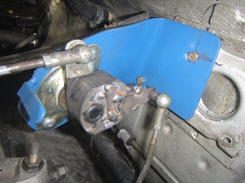 Bracket for mercedes throttle linkage Bracket mounted on firewall turns Mercedes linkage 90 degrees to operate throttle on carb. Length of arms adjusted to get correct travel. Note stop welded to bracket to prevent linkage from going over-center and holding throttle open!