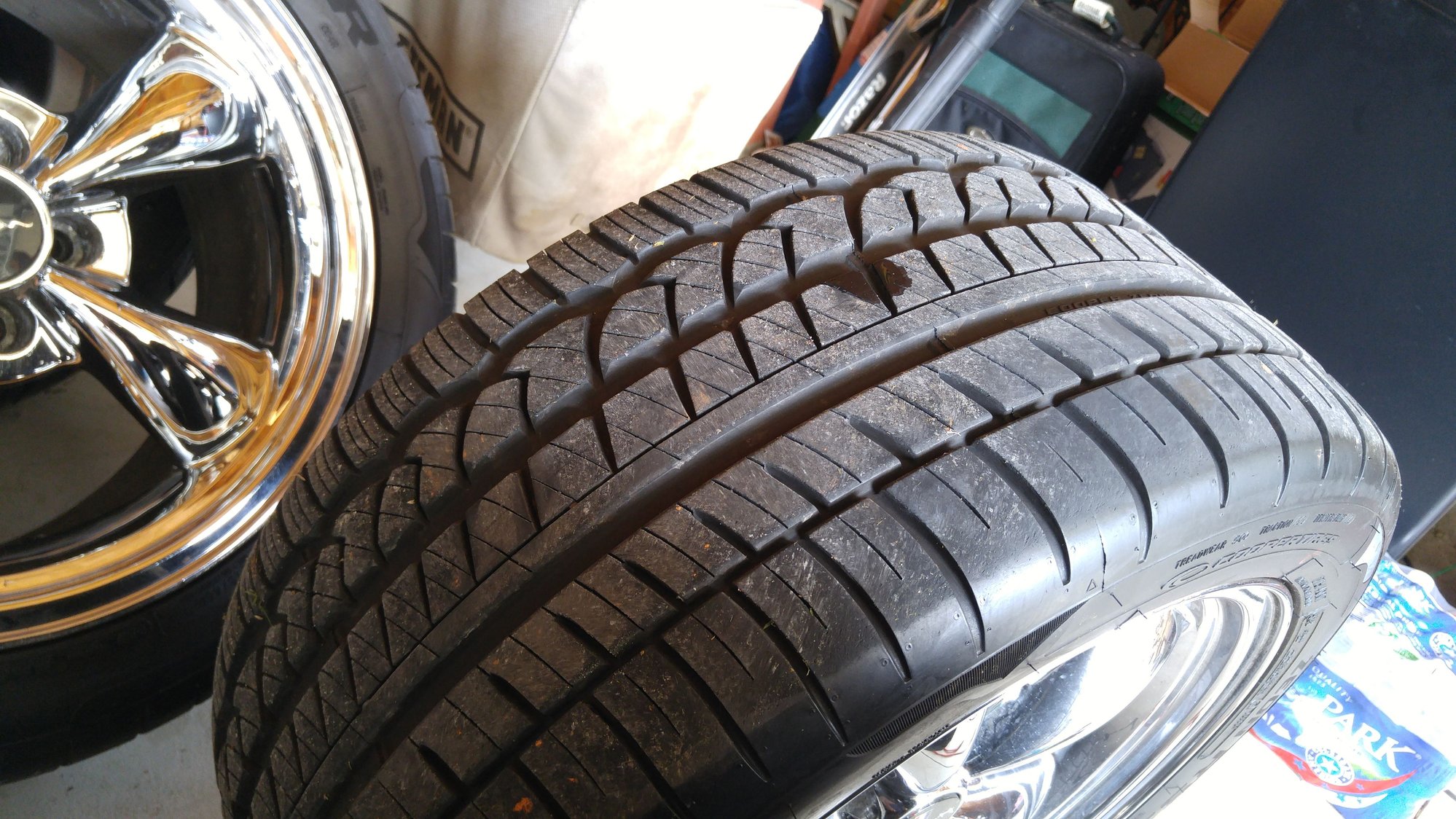 the tires have anywhere between 4/32 seconds and 8/32 seconds worth of tread left obviously the rears have a little less tread lol.