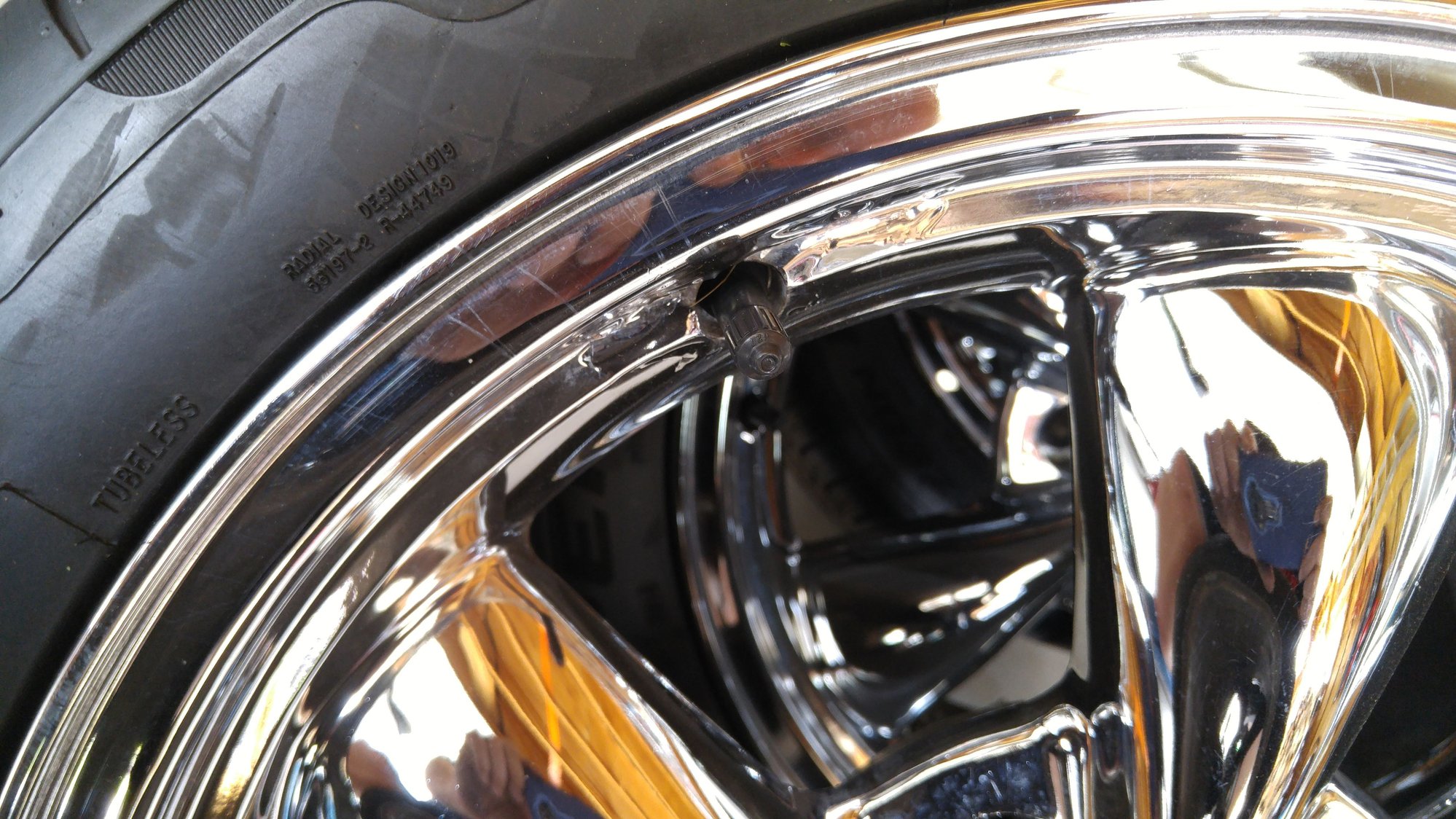 One is curb rashes a bit. The others have chrome bubble by valve stem. Very common issue.