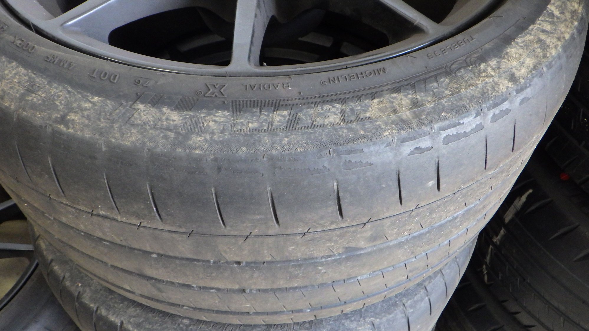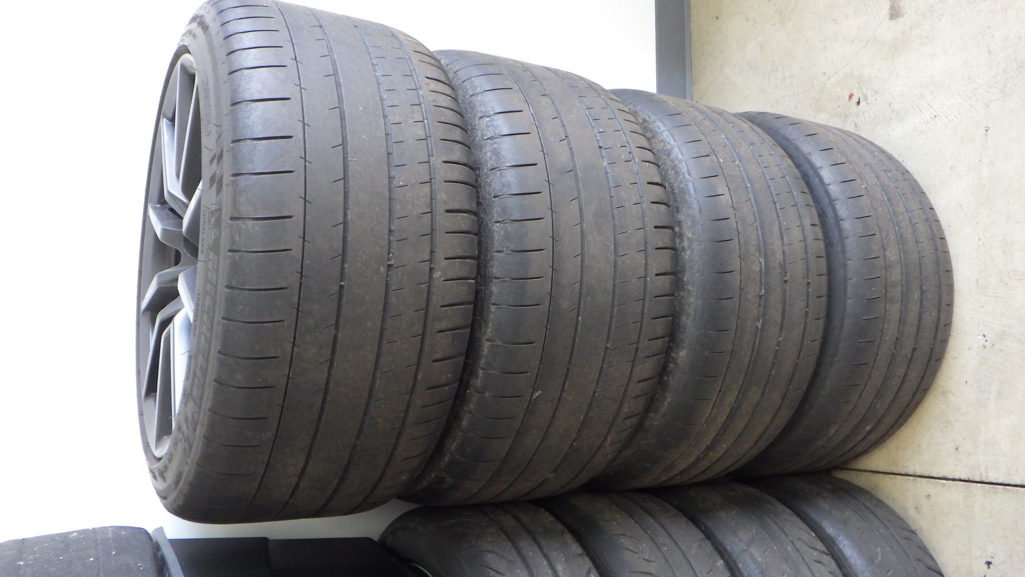 I have one used set of 2018 OEM wheels with Michelin Pilot Super Sport tires. These are the original set that came with the car and have been on the track a lot. There is still a good amount of tread on the tires, but the front shoulders are worn out (no camber plates...). The pictures show one wheel does have some damage on the outside of the rim. $800 for the set