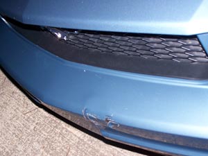 Some A-hole hit me and drove away. Now my front bumper has a big square gash in it and part is peeled up.