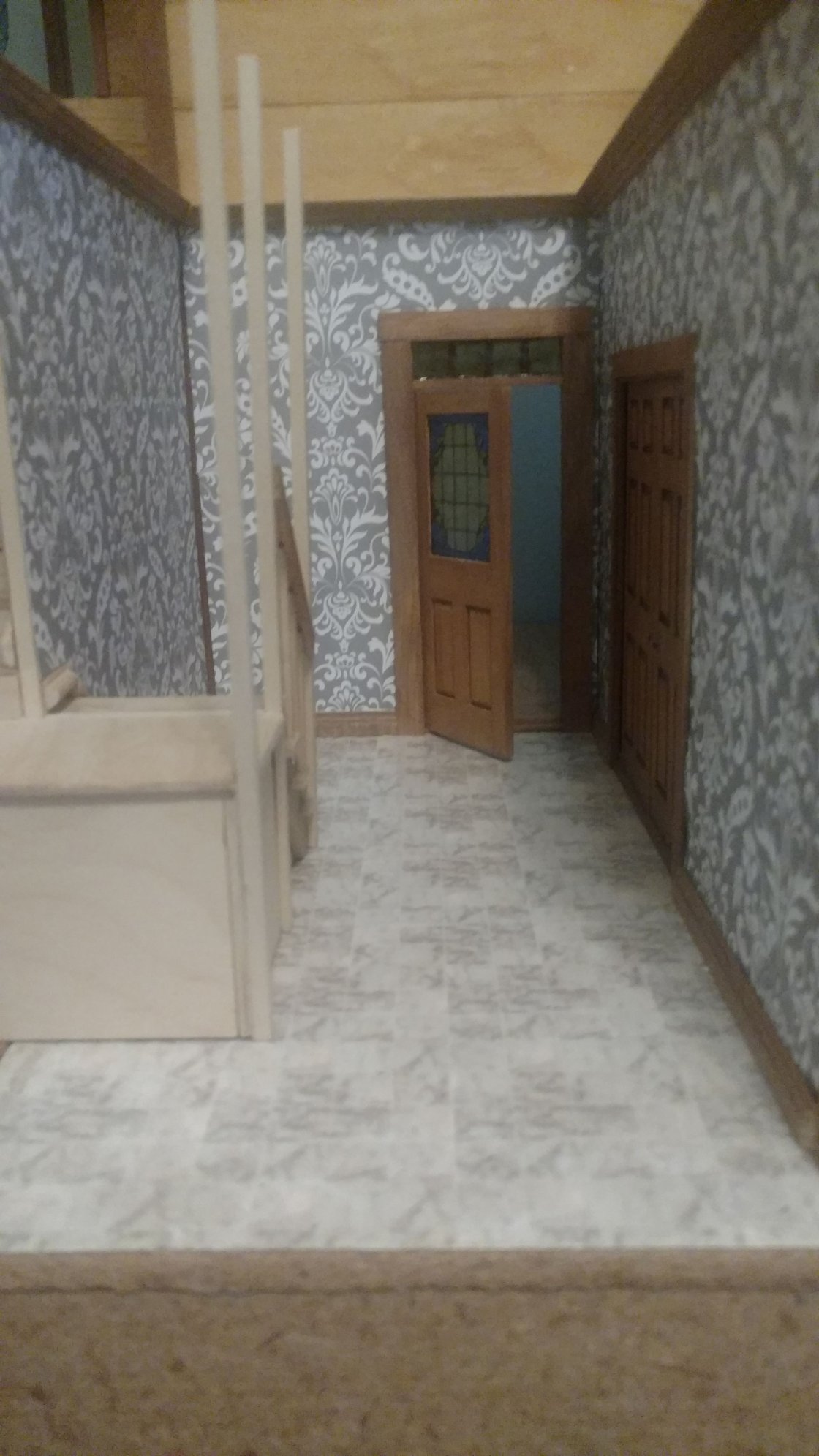 I'm working on a dollhouse for the oldest grand-daughter. It belonged to her grandmother and I'm hoping to have it done for her by Christmas. The main structure is done and now the interior decorating begins. Four rooms (ground floor) mostly completed, only nine more to go! Yeah, it's a big dollhouse.