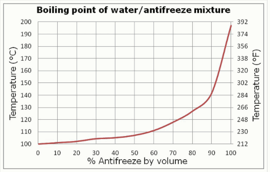The boiling point of the coolant is also raised by the concentration of antifreeze.