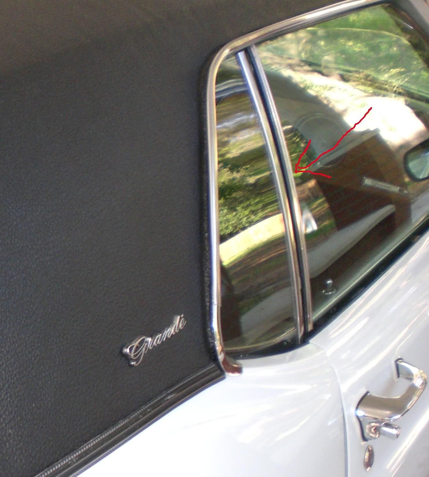 See the little piece of chrome trim the red arrow is pointing to? It's actually two pieces, one for the main window, the other for the vent window. I'm missing the piece that goes on the main window so it leaves a gap. I'm trying to track down the part but it's tough when you don't know what to search for because you don't know what it is called -lol. Any body shop guys have some suggestions? Thanks.