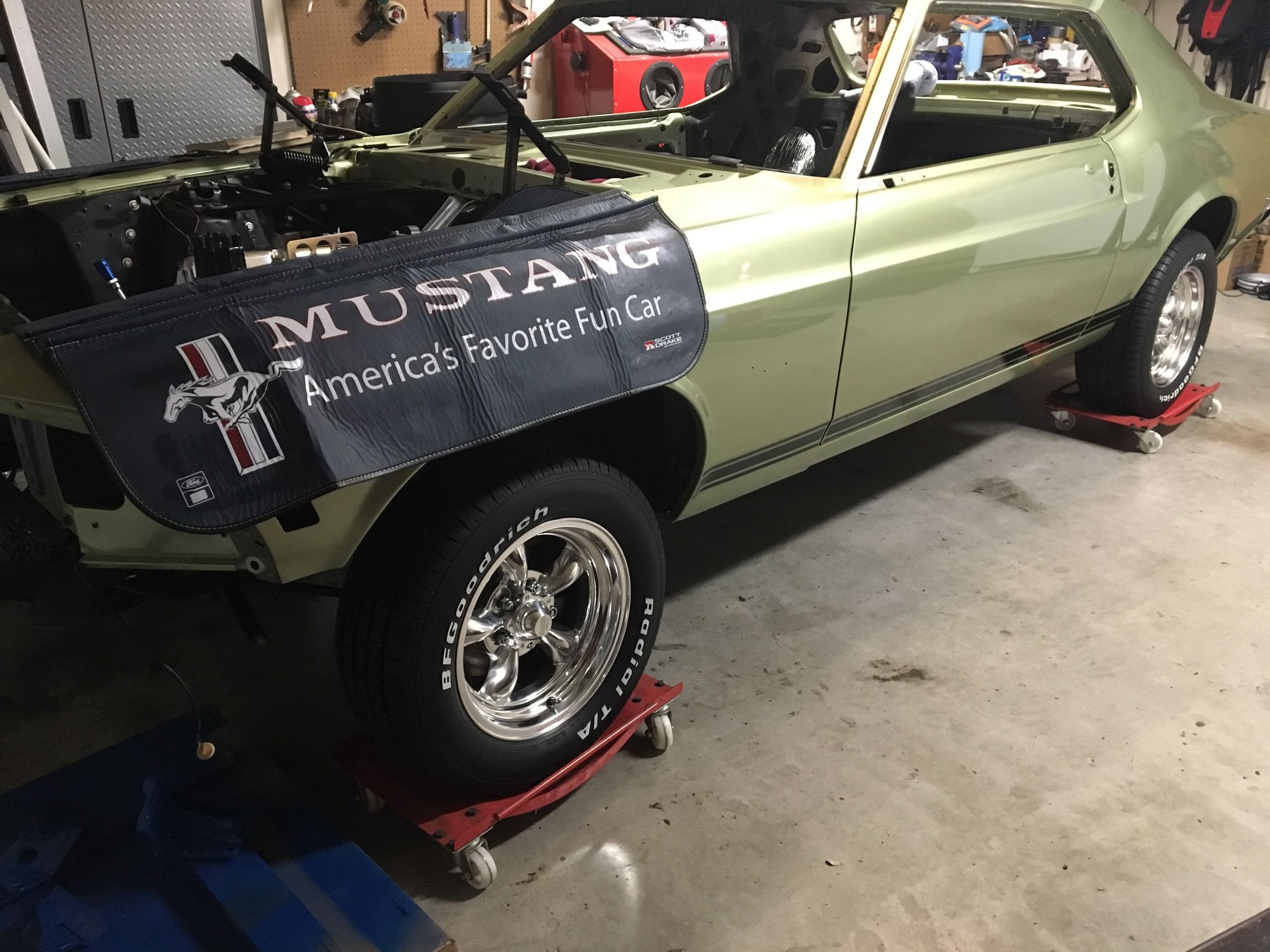 [QUOTE=Stoke;8606161]Okay I finally got around to getting the motor and tranny put back in the car and got some new tires and wheels for it. Still a ways to go but I'm making progress a little at a time.