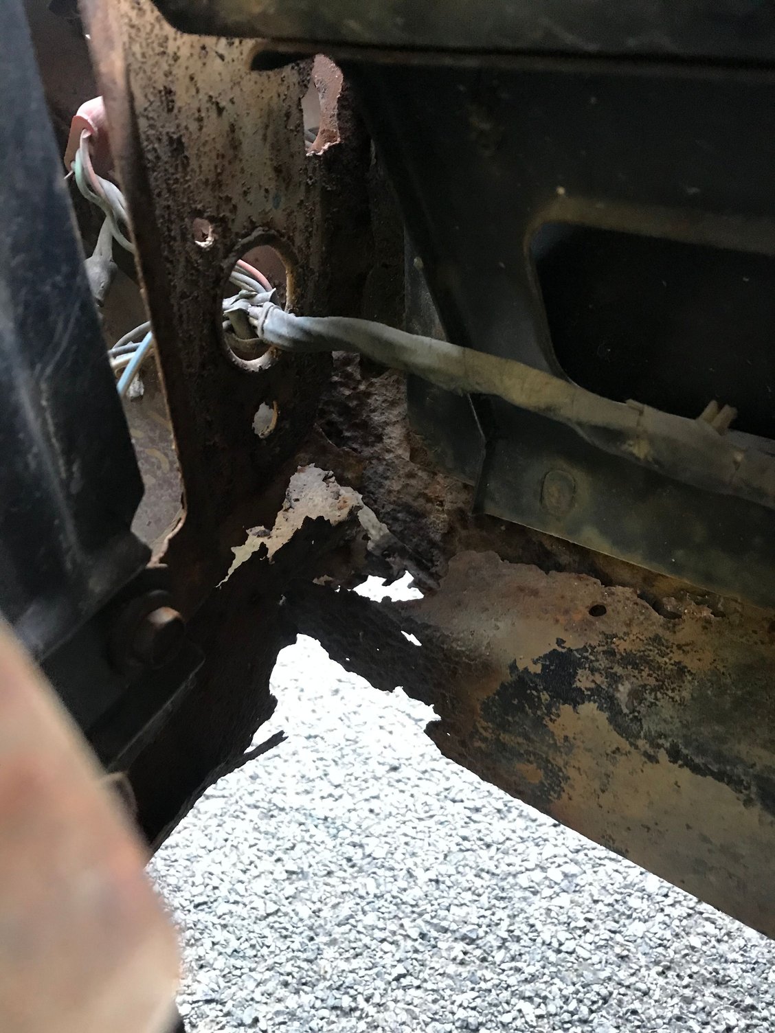 I have attached a couple of pics of a rust spot just below the battery tray on the front passenger side of my '67. I am wondering if this rust through is the frame or just a part that attaches to the frame.