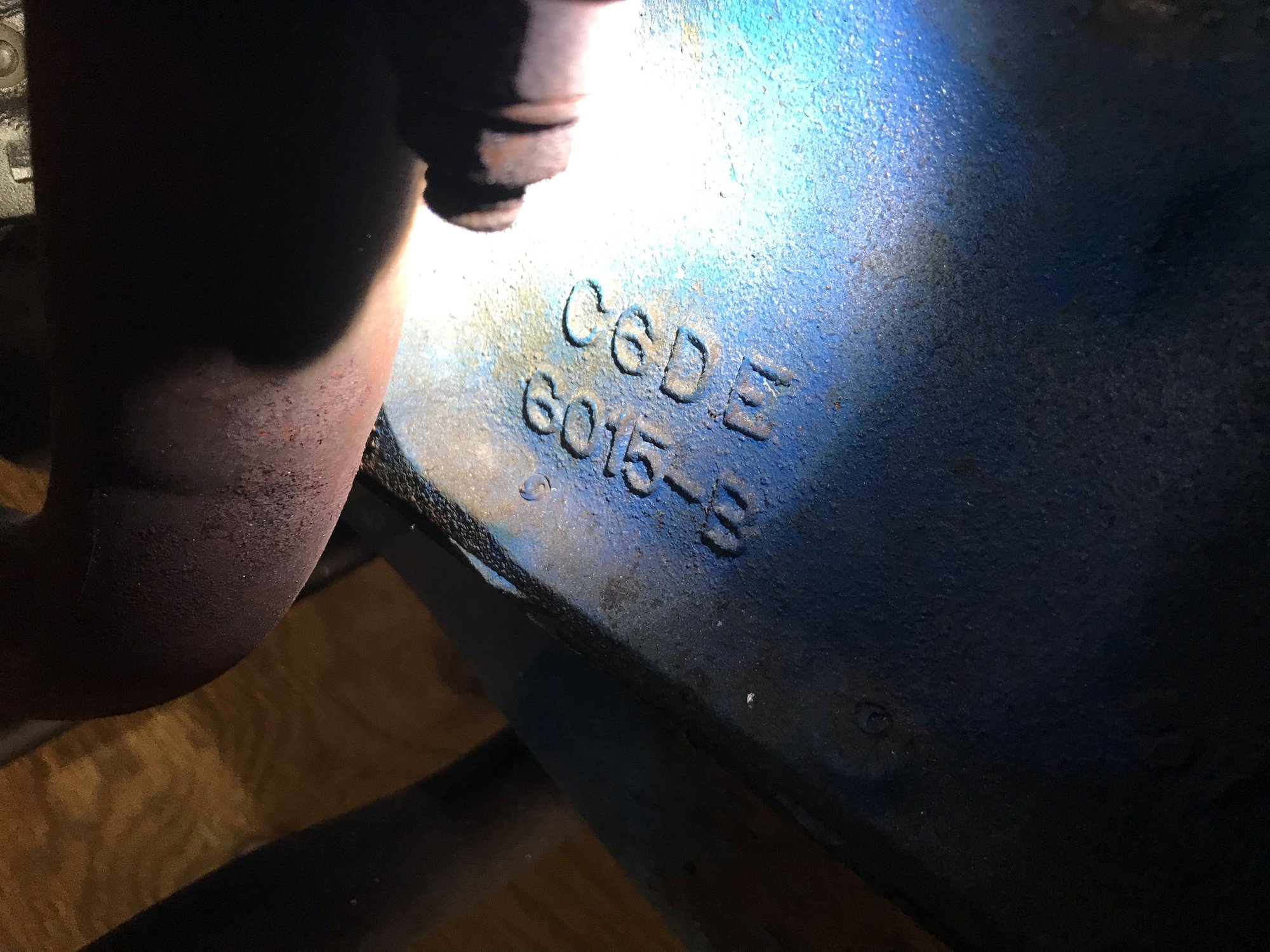 Second mystery.....I do believe that the engine was replaced at some point because it's a blue engine block/valve cover/air cleaner combination on this vehicle. The code on the block is C6DE....OK, the sources say it's a 1966 motor, but the "D" says its a Falcon motor from the data I'm seeing. Is that true? Next series of castings are 6015-B, which the same sources says that 6015 is for the 289, which this clearly is not, so that's not correct....so, what dows the 6015-B mean on this engine? Lastly, there is a 7C8 casting on it, which is supposed to be the date the block was made. From looking at the decoding chart, it would say March 8, 1967, which doesn't make much sense with the C6DE casting number.