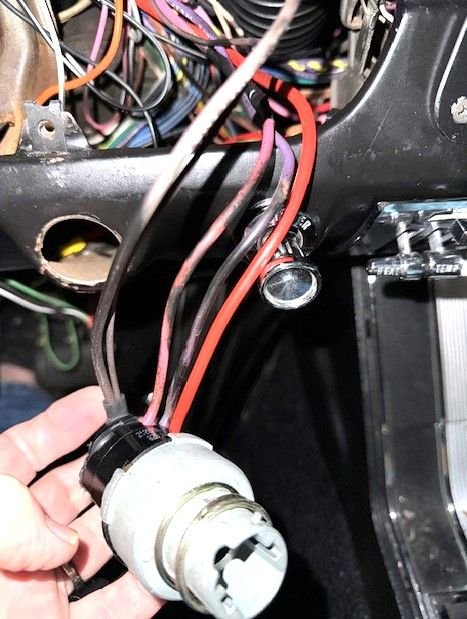 I pulled the starter switch and discovered some really concerning work. Apparently the shop got something installing the harness and burned up the ignition switch pigtail, there is some evidence of the the existing wires have been exposed to flame. Rather than get a new pigtail from one of the two sources here (available in 2 days) they improvised with what looks like a glue of some sort and various colored wires... I now have in hand a new switch and pigtail so I have to track down the existing wires to get the connections right. I know that the heavy purple wire goes to the solenoid.....