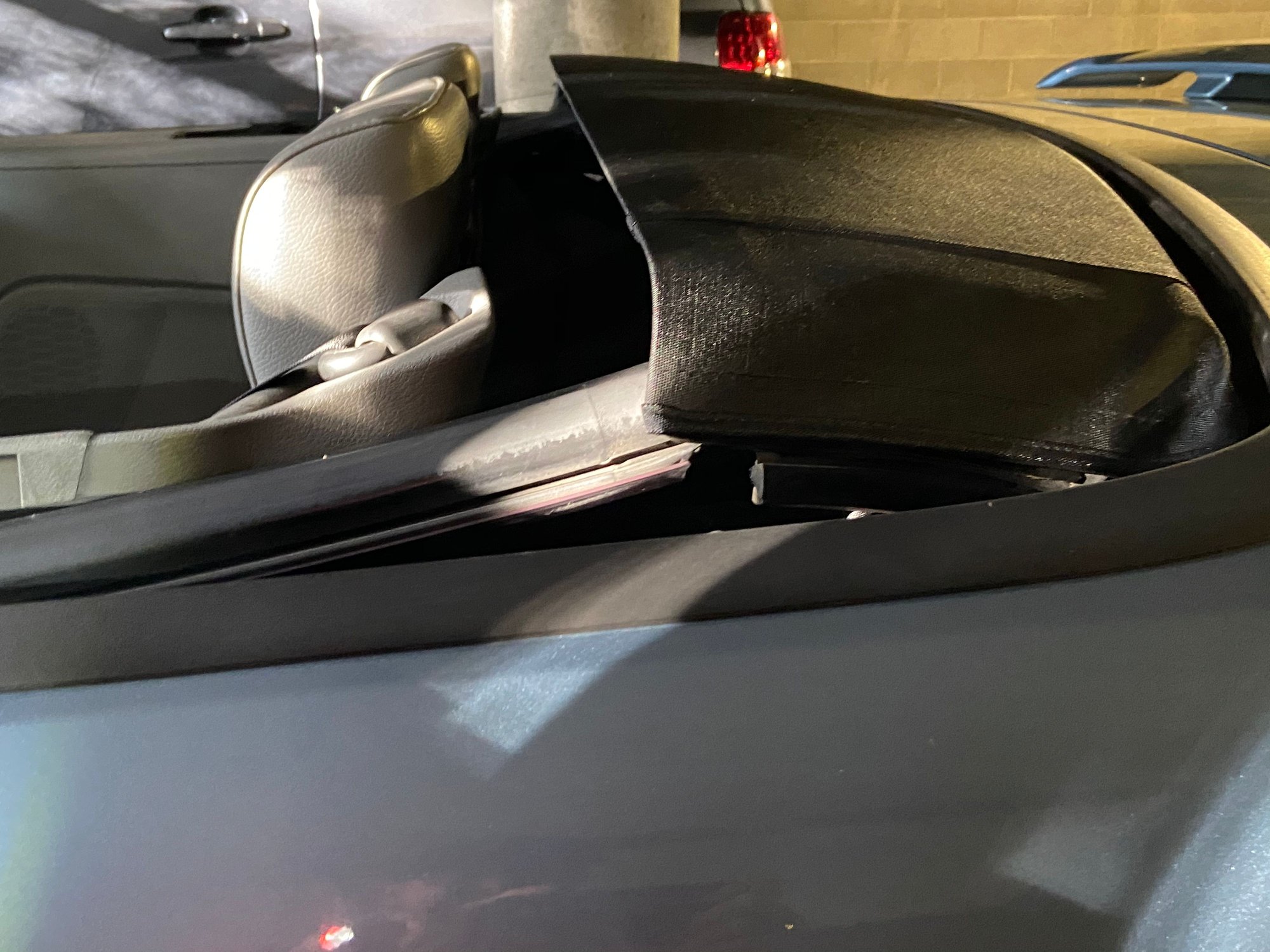 And the question on this is… Is this working as intended. Because when I bought this car, there was an exact 05 GT convertible on the lot and I looked at its functionality as well. It also did not have the boot retract flush to the body. It looks wrong to me, but I can’t seem to find anything on that either on the Internet, or any manual or shop manual. Does anyone have any idea about this? I know I need to have it adjusted at some point but I would not think that would be a problem that would relate to the boot and the way it would fit onto the chassis of the car.Any ideas or thoughts are helpful. Thanks so much and I look forward to hearing your thoughts. Does not retract all the way or fit flush against the body Does not retract all the way or fit flush against the body Same thing from the other side. And I do hear the motor wind so it’s trying to do something right? Another side angle. This certainly does not look right to me. This just can’t be right can it? A shot from the drivers seat, and it looks as if it still has too much with between the body and where the package tray would be This is just the top up, perfect.