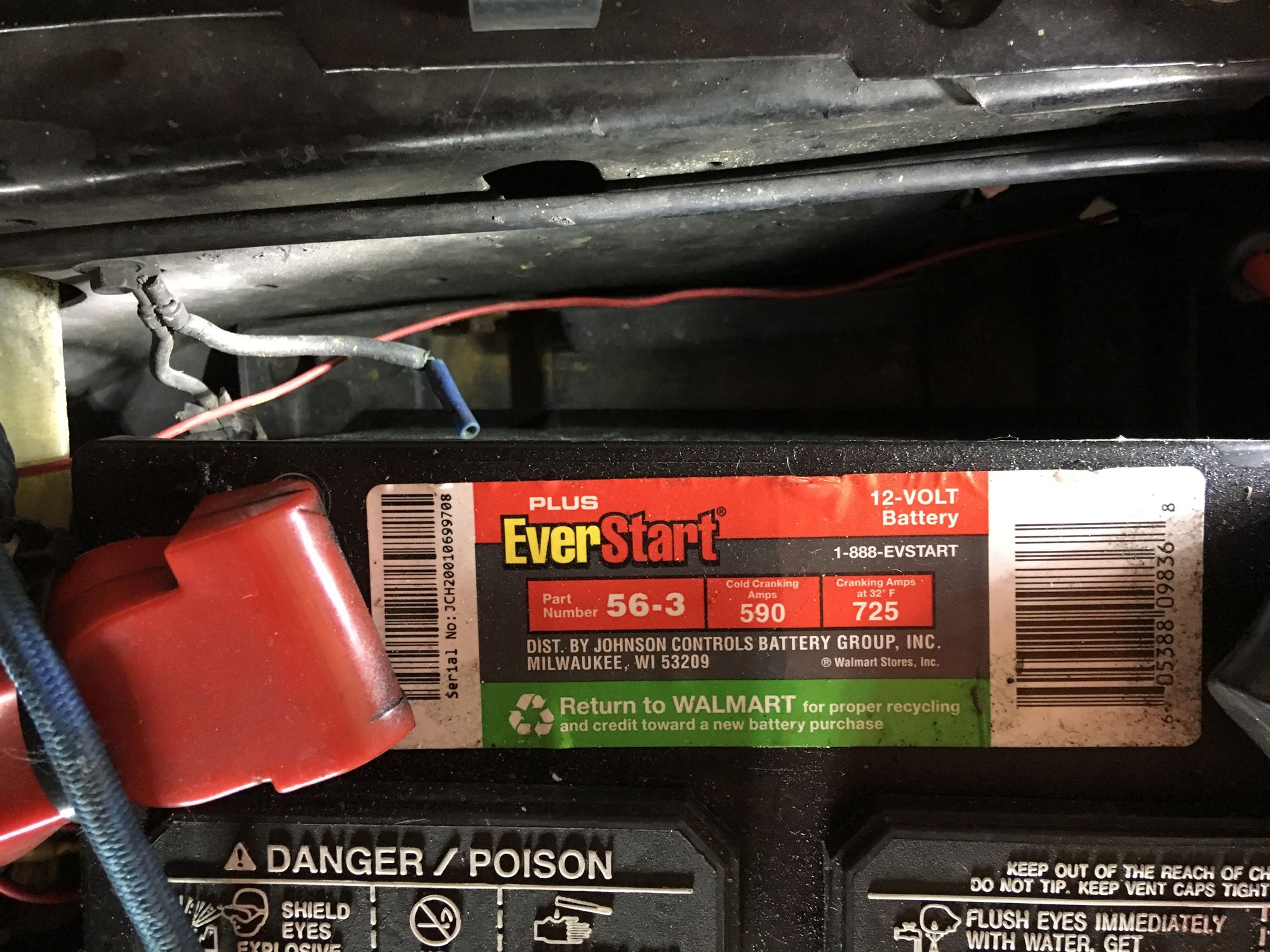 The small red wire running behind the battery was put there by me years ago hook up a device that needed a small amount of power and it's hooked up to the positive terminal.