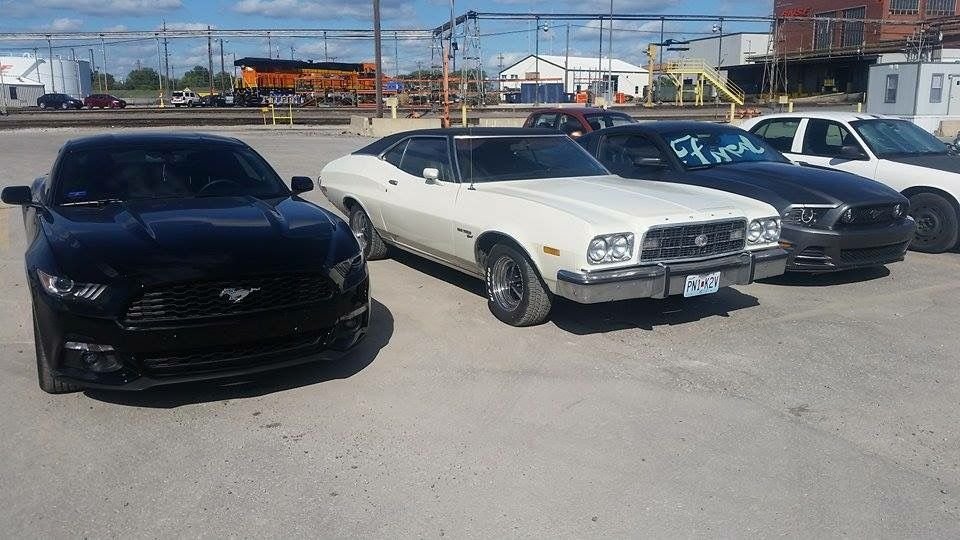 Picture of my car at work, guy I work with just bought an ecoboost 2015 and another guys Gran Torino