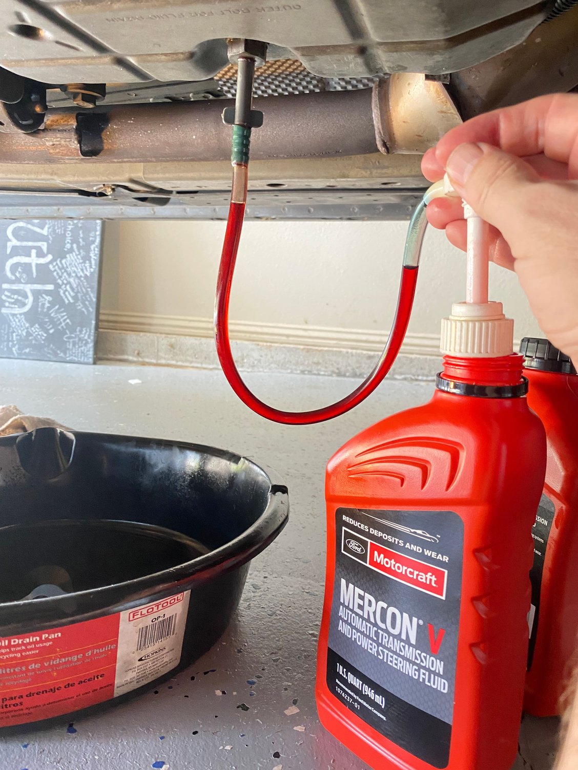 It's a Home Depot bug sprayer and if I recall a 3/8" ID clear hose with a ball valve a nipple on one end a quick release on the other end but, you can use a nipple on both ends. .For the end going into the tranny pan I used a 1/8" to 1/4" adapter bushing and a 1/4" MPT to 3/8 nipple. It was about $25 for parts about 10 years ago. It'll probably be $35 now. Tubing should be long enough so you can have the pump out from under the car.