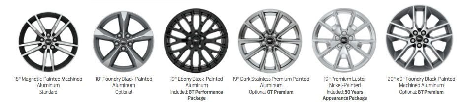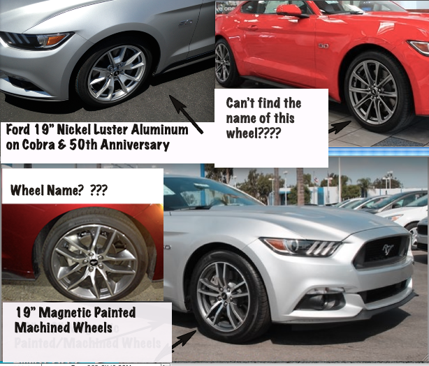 Below are 4 wheels that were available on a GT Premium in 2015! Slowly I've been finding the names of them by myself. The dealers have no clue, & could care less! "I don't know, but let me show you what I have on the lot!" I've been left with an attitude like the Vietnamese University! Phuc U. I'm about ready to give up & build a '56 Chevy! I'm going to call Ford Customer Service & see if they give a Chit! They'll probably tell me to go see a Ford Dealer!