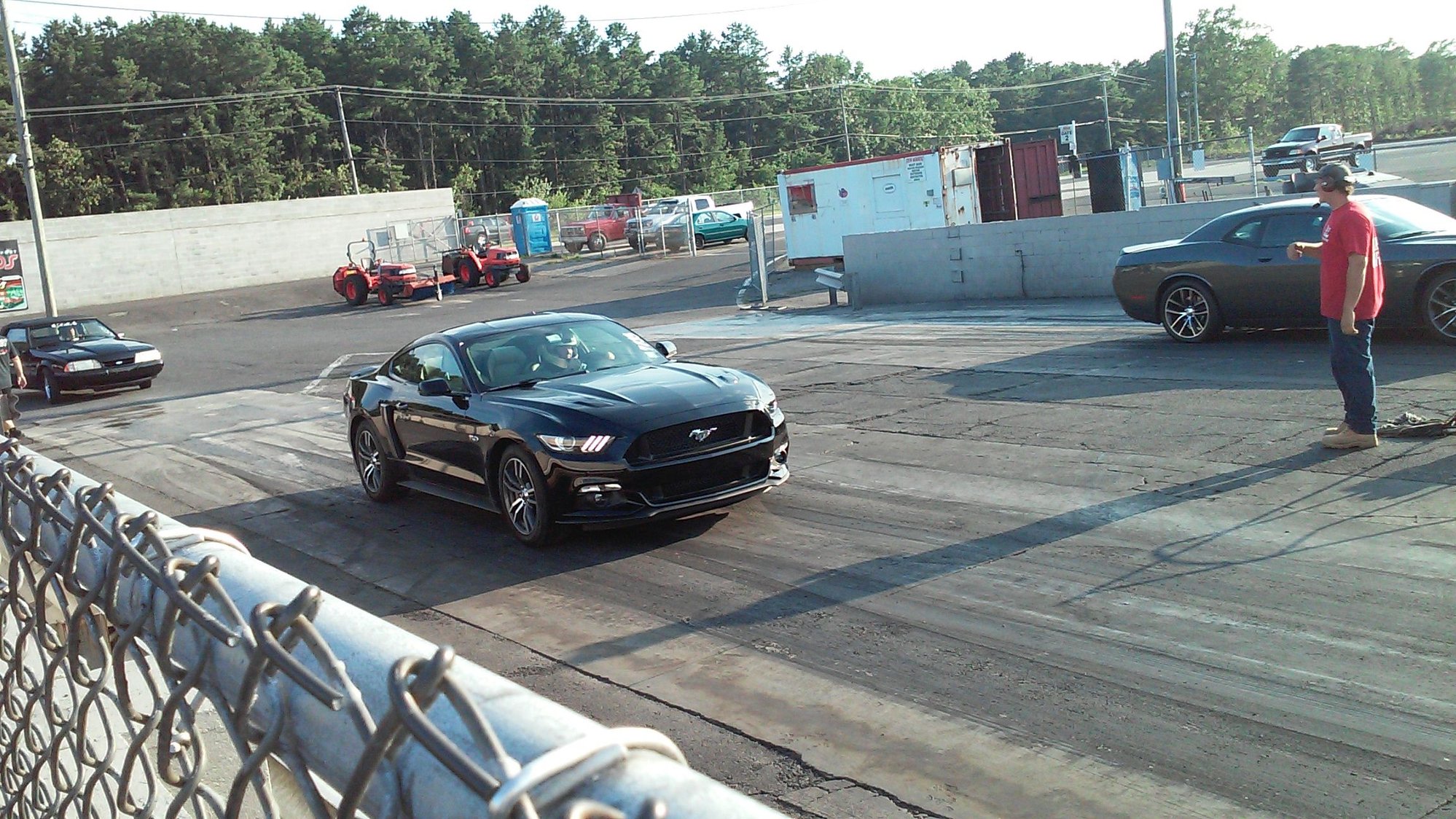 Well I couldn't hold out any longer. Took the GT to the track tonight. It has 500 miles on the odometer. Loaded up the SCT tune and bolted on an air raid intake before we left. Over all pretty happy for a first time out in a brand new car. Car ran consistent 12.5s-12.7s. It was about 90 degrees and humid and track prep was craptastic. Got sideways twice. Beat some pretty stout cars in the process. Smoked a guy in a SRT chally stick shift. poor bastard never got out of the 13s. Also edge out an c63 AMG. Looking forward to running it in the fall with good air should be about 3/10ths faster with no other changes. So I'm betting it'll hit 12.2-12.3 the way it sits now on skinny all season tires.. I'll post a slip or two and a couple photos tomorrow.