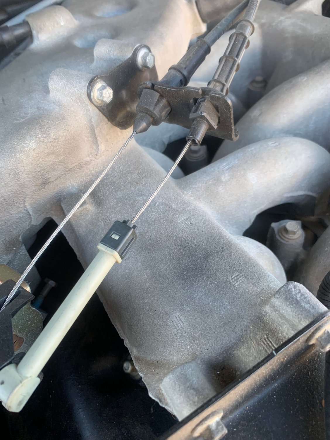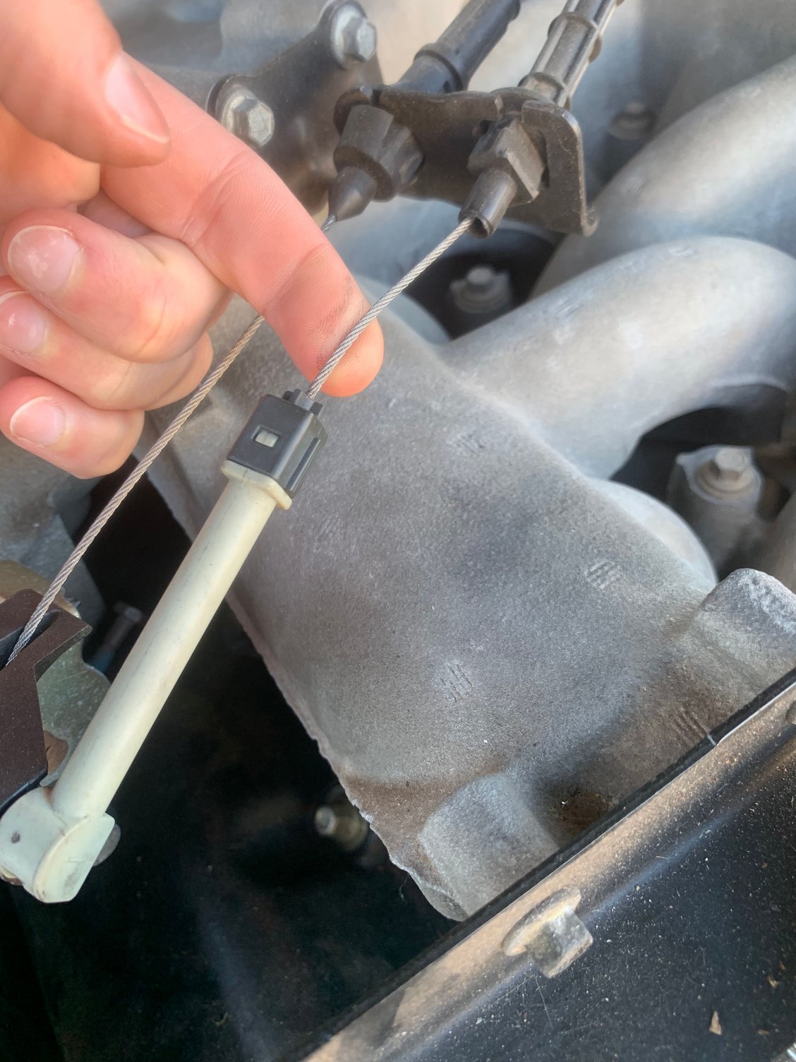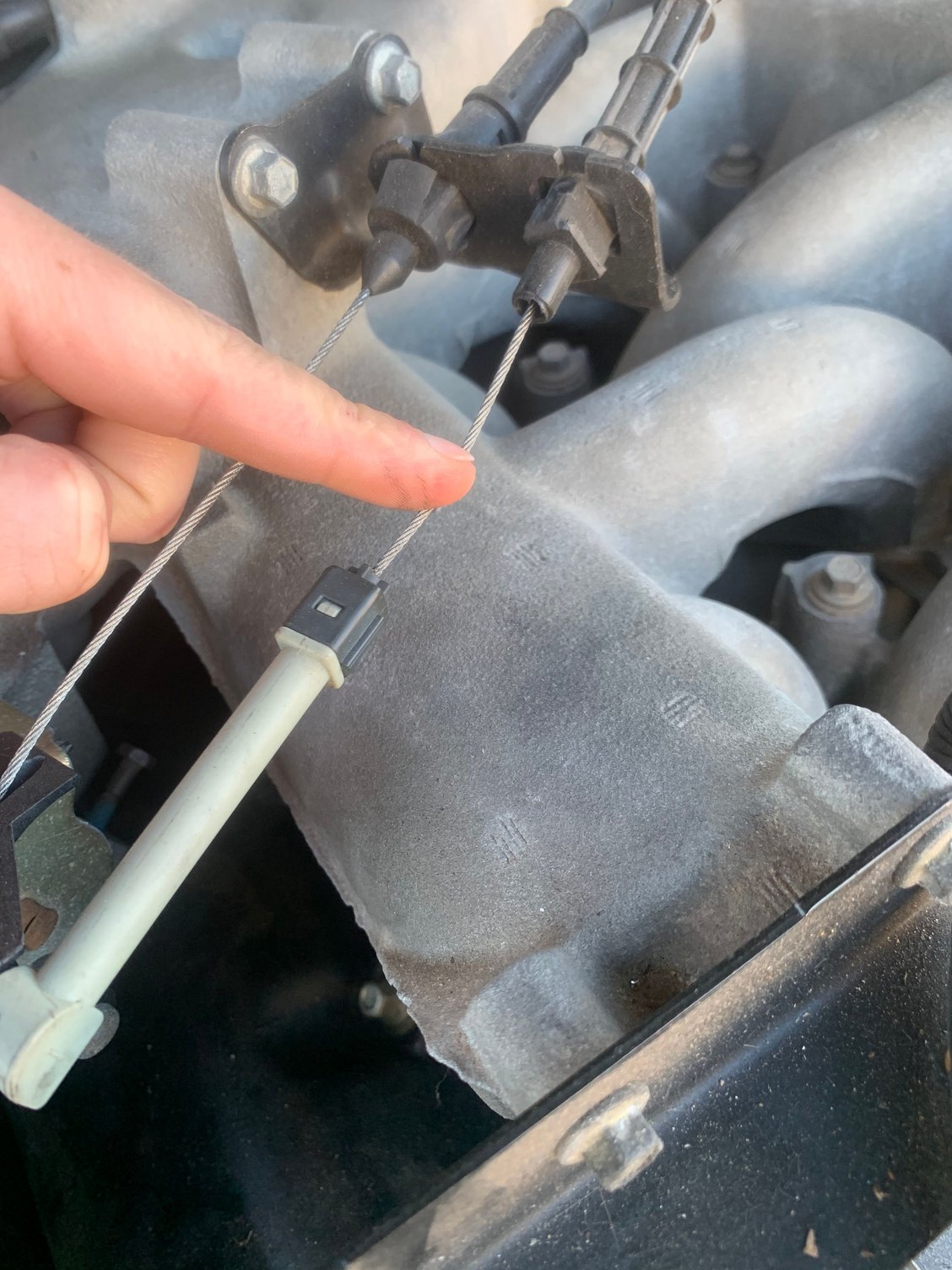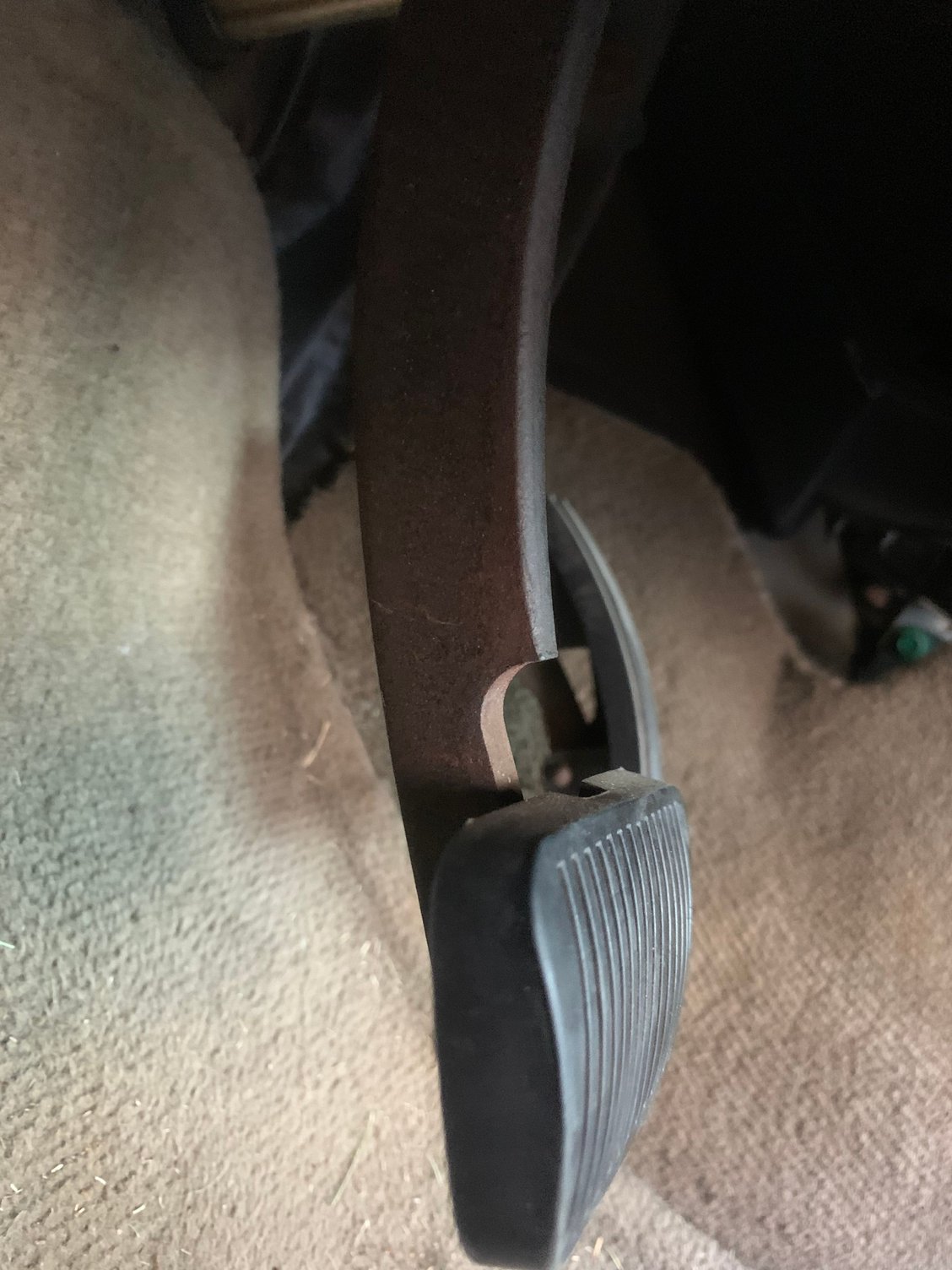 I had my uncle put the bolt and nut setup on the cable awhile back since the gas pedal had a lot of play in it and would move back and forth and also sit close to the firewall. This may be the issue since it’s held pretty tight now and the gas and brake pedal are nearly even with each other.