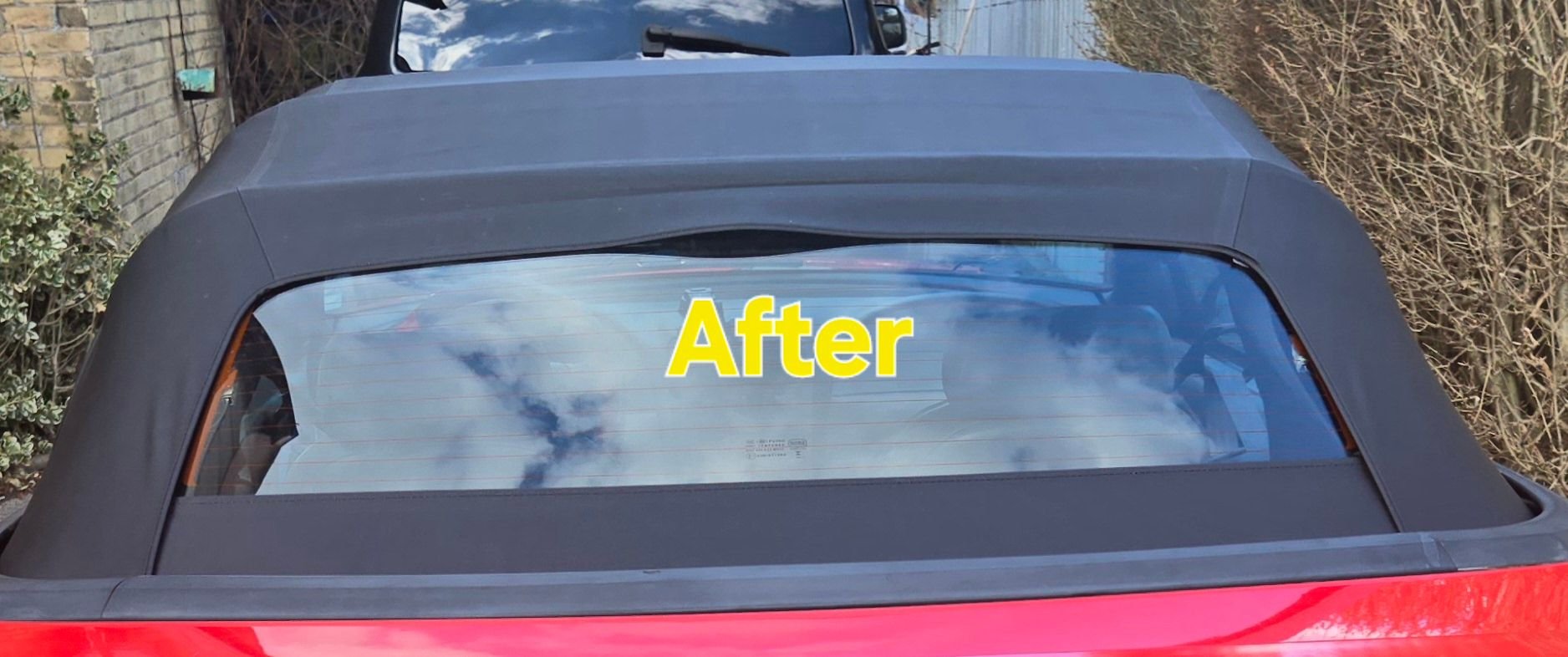 HELP NEEDED! My husband and I have a 2000 Mustang convertible and we just got a brand new Robbins 2 piece sailcloth vinyl soft top with glass defroster window installed only 5 days ago. The top was dry after some rain earlier today, so when it got sunny, we went for an hour-long top down drive. When we came home and tried to close it, it was pretty tight and my husband had to help close the passenger side latch as I couldn't get it closed. When we got out, we noticed the upper centre above the rear window had a strange look. The fabric is popping up off the top of the window, but it was completely flat an hour earlier before this drive. I took pictures immediately before the drive because we replaced the tail lights this afternoon. You'll notice no lifting/puckering in the first pic, and see the second taken a minute after we got home and closed up the top. It was installed by a professional auto trim shop located an hour away. I'm hoping this is an easy at-home fix so I don't have to bring it out to the shop and find a ride home if they have to keep my Mustang overnight. If anyone has any advice/guidance on this issue, I would really appreciate it. I don't know how it happened, and after spending several thousand dollars on a new top + install, I'm pretty concerned