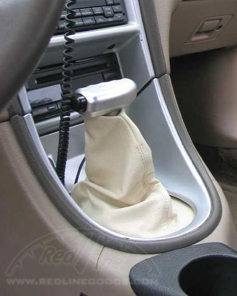 Redline Automotive Accessories ( www.redlinegoods.com ) is one of the most prompt and customer friendly companies you can come across. They manufacture shift and e-brake boots for a WIDE variety of vehicles, now also including the 94-04 Mustang. Their creations are impressive to the point that it may be nigh impossible to find better quality anywhere - especially at such low prices! With the speed of delivery after ordering, simple installation instructions and classy styling, this is a modification highly recommended to anyone who takes pride in their ride.