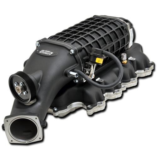 Magnuson’s MP2300 TVS supercharger utilizes EATON’s latest 6th Generation supercharger rotor technology found in such industry leading performance vehicles as the Corvette ZR-1, the Cadillac CTS-V, and the 2013-2014 Mustang GT500. These Twin Vortices Series Superchargers feature a pair of four-lobe, high-helix rotors with 160-degrees of overall twist that are housed in Magnuson’s patented high-flow housing. This highly efficient package requires less power to drive, delivers cooler discharge temperatures, and is much quieter than many of its competitors.