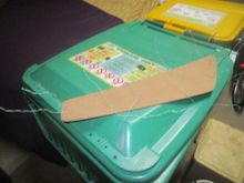 Drilling of eight pairs of holes complete, also showing two drill bits registering location of Masonite