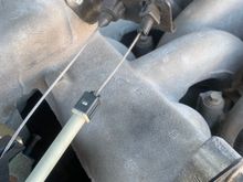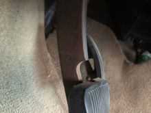 I had my uncle put the bolt and nut setup on the cable awhile back since the gas pedal had a lot of play in it and would move back and forth and also sit close to the firewall. This may be the issue since it’s held pretty tight now and the gas and brake pedal are nearly even with each other.