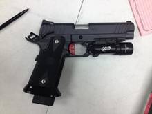 Becky trying out my Colt Defender .45