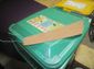 Vinyl and Masonite sprayed with glue