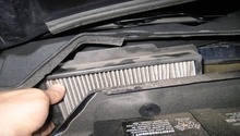 Push the top section of the housing back down over the air filter and secure the clips on both sides. You may need to re-seat the filter to make sure it's flat all around, so that the top section of the housing fits tightly and forms a solid seal all around.