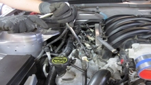 To test the fuel injector, you'll need to test the pressure at the injector. A fuel pressure gauge will be necessary. Connect the fuel pressure gauge to the fuel supply rail. For the Mustang, the easiest place to tap into the fuel supply is through the Schrader valve. Disconnect the electrical harness for the injector you are testing. Connect a jumper wire from the injector's negative pin to the battery's negative terminal. Another wire needs to go from the positive pin on the injector to a push button switch, which needs to be connected to the battery's positive terminal. Make sure there's an inline fuse on the wire connecting the switch and battery. Turn the key in the ignition without turning the engine on. Pushing the switch will activate the fuel injector. You should see the fuel pressure drop. If not, then the fuel injector needs to be cleaned or replaced.
