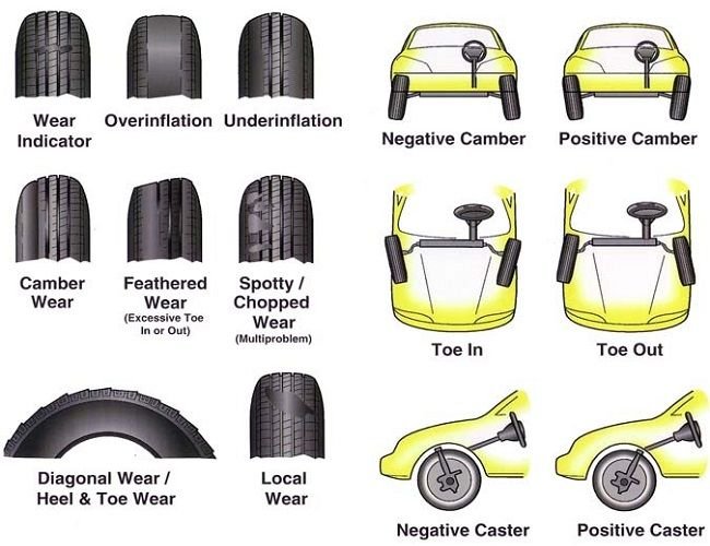 Figure 4. This diagram shows how improper suspension alignment can cause different types of tire wear.