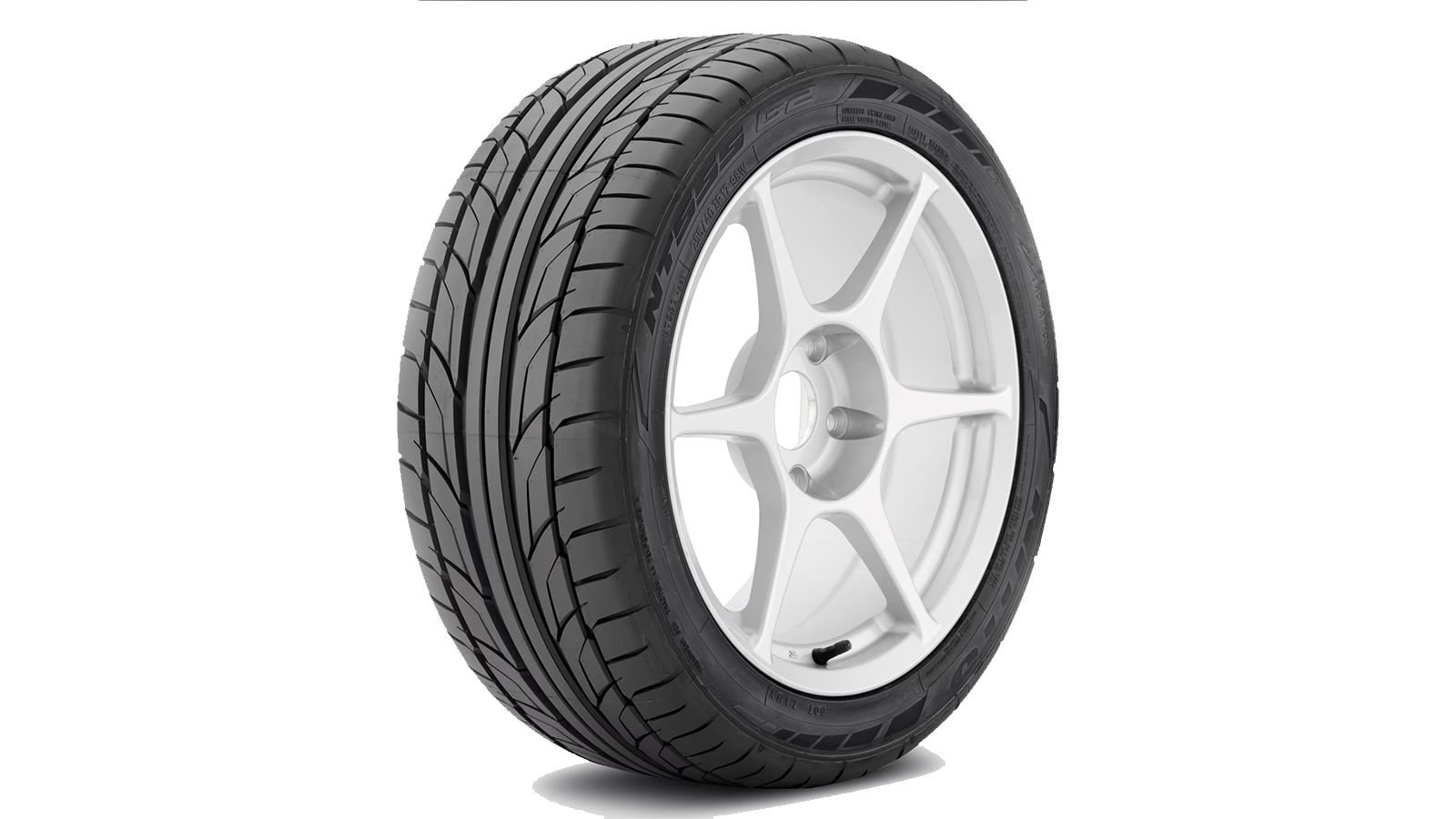 Stepping up into the summer-only category, we have the Nitto NT555 G2, the second iteration of an iconic performance tire beloved by drag and roll racers. Nitto combines twin center ribs, large tapered blocks, and reinforced shoulder tread blocks to improve straight-line acceleration as well in grip in wet and dry cornering. These are the perfect tires for hot rodders or daily drivers who play hard on the weekend too.