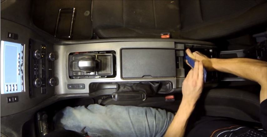 - Open the bottom part of the console and use a trim removal tool to carefully pull up the console.