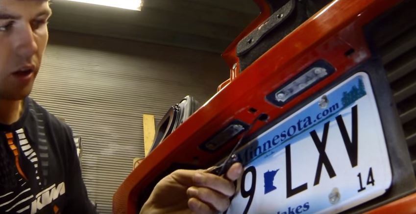 - Fish another wire from the tail light cavity to the hole above the license plate.