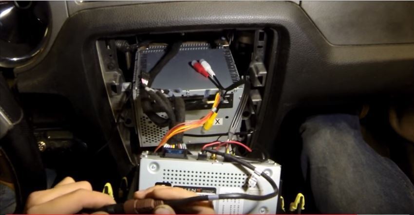 - Fish the camera wire from the console up behind the stereo and connect it.