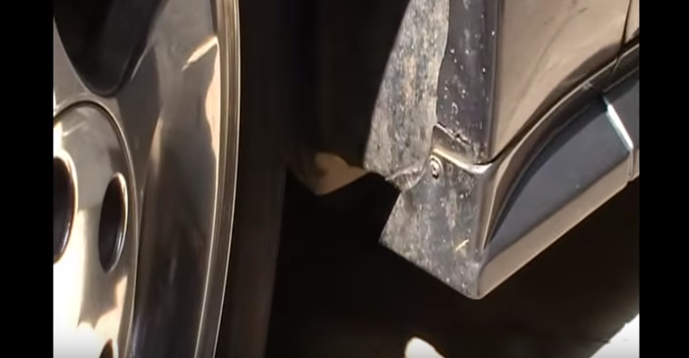 In order to remove the splash guard, you will need to pull off the side skirt trim. Simple pry it down, and then slide it forward to remove. Locate the two 8mm bolts holding the splash guard in place and remove them.